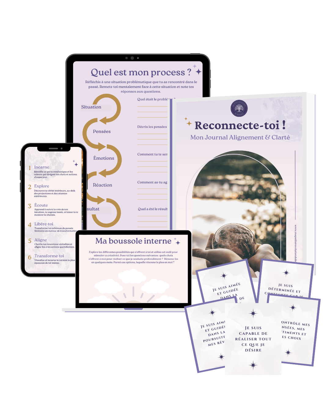 Le Journal Alignement et Clarté est conçu pour t’aider à revenir à l'intérieur pour retrouver ton équilibre et ta direction grâce à 6 techniques puissantes.